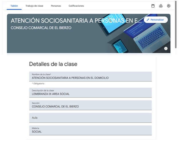 Montaje y puesta en funcionamiento de la Classroom que se usa en el aula para la formación de las alumnas en el área sanitaria.